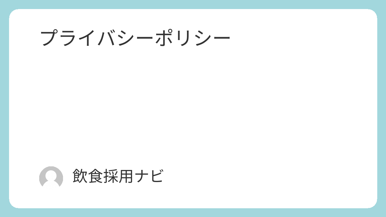 飲食採用ナビ(以下「当サイト」)は、ユーザーの個人情報の取り扱いについて、以下のとおりプライバシーポリシーを定めます。